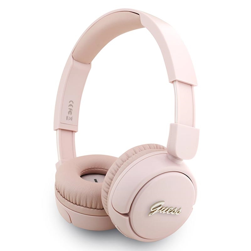 Guess Metal Logo Script Bluetooth 5.3 Auscultadores supra-auriculares - 30 h de reprodução, carregamento rápido USB-C, IPX4 à prova de suor e salpicos