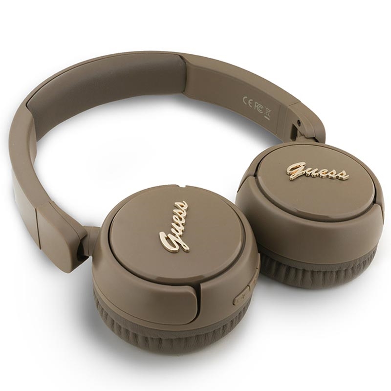 Guess Metal Logo Script Bluetooth 5.3 Auscultadores supra-auriculares - 30 h de reprodução, carregamento rápido USB-C, IPX4 à prova de suor e salpicos