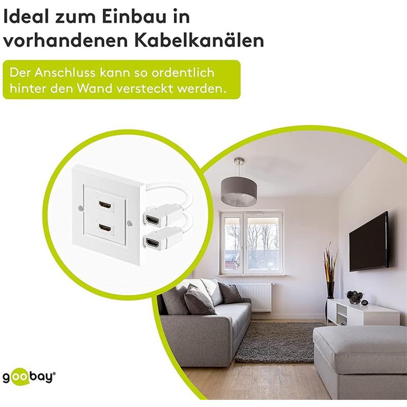 HDMI™-kopplingsdosa for infälld montering gör det möjligt att ansluta 2 HDMI™-compatibla enheter to Väggen och överföra signalen to flera rum. Aumento de sinal com aumento de até 4K a 60 Hz (não compatível), entrada HDMI™ leve para snabb, flexível e esteticamente cabo de extensão em vaggen, HDMI™ Vägguttaget är enkelt attt installera i alla padrão 68 mm infällda lådor/väggrlådor hing. Inbyggt HDMI™ uttag for anslutning av tv-apparter and monitored med spelkonsoler, como PlayStation ou Xbox samt beamers, projetor e streaming mottagare to Amazon Fire TV or Apple TV, HDMI plattered HDMI™-contakter and avancerad teknik garante a transmissão de sinal de qualidade, reprodução de imagem e vídeo skarp - och bildkvalitet. Stöder alla vanliga funktioner como ARC (Audio Return Channel), HDCP, HEC ou 3D