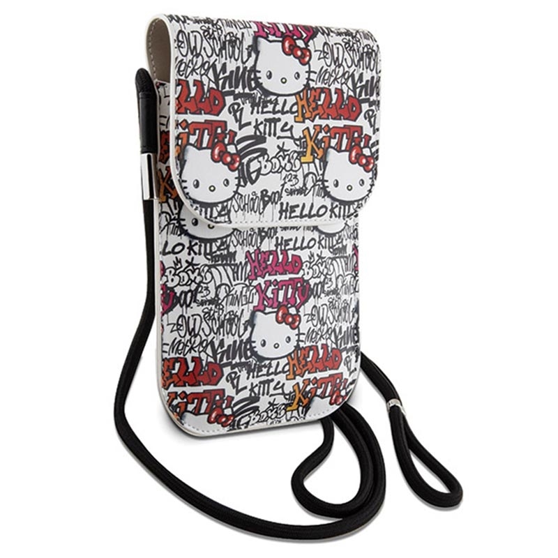 O interior da bolsa esconde um bolso especial para um smartphone, garantindo a segurança contra riscos e choques. O bolso exterior extra cria um local ideal para guardar cartões de pagamento ou outros objectos pequenos. Cada produto é produzido sob licença da Hello Kitty, garantindo autenticidade e qualidade.