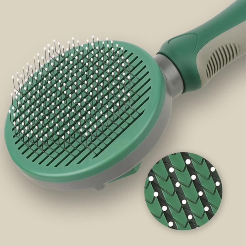 - Botão de auto-limpeza: Remove sem esforço o pelo recolhido do pente, garantindo uma escovagem eficiente e higiénica.