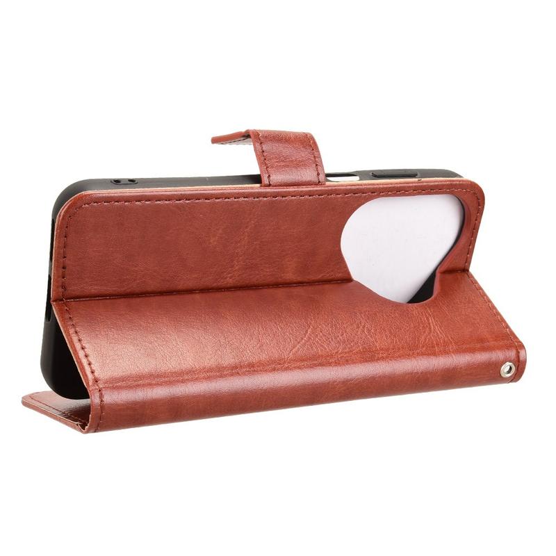 O nome "Crazy Horse" vem da selaria equestre tradicional; a superfície texturizada é tratada com ceras que criam um efeito de dois tons, imitando o couro de grão integral, mantendo-se amigo dos animais, mais leve e mais resistente a riscos. Isto torna-o ideal para acessórios para telemóveis de uso diário, onde tanto a durabilidade como o estilo são importantes.
