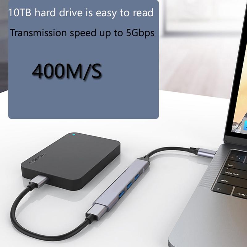 Hub USB-C 4 em 1 com 1x USB 3.0 + 3x USB 2.0 - Atualização instantânea de portas para computadores portáteis, tablets e telemóveis