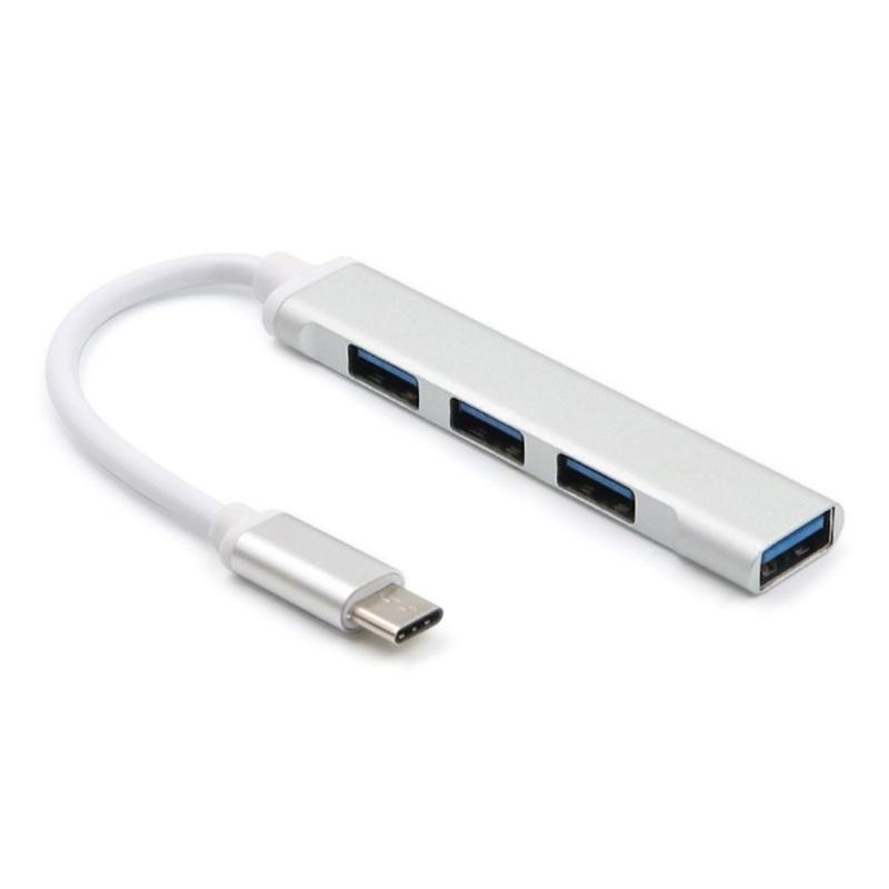 Hub USB-C Premium com 4 portas USB-A - Alumínio - Prata