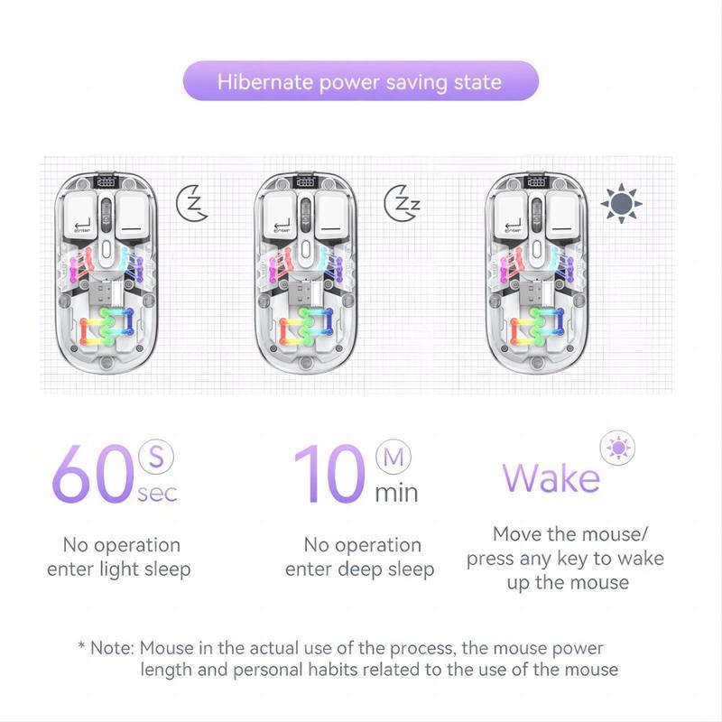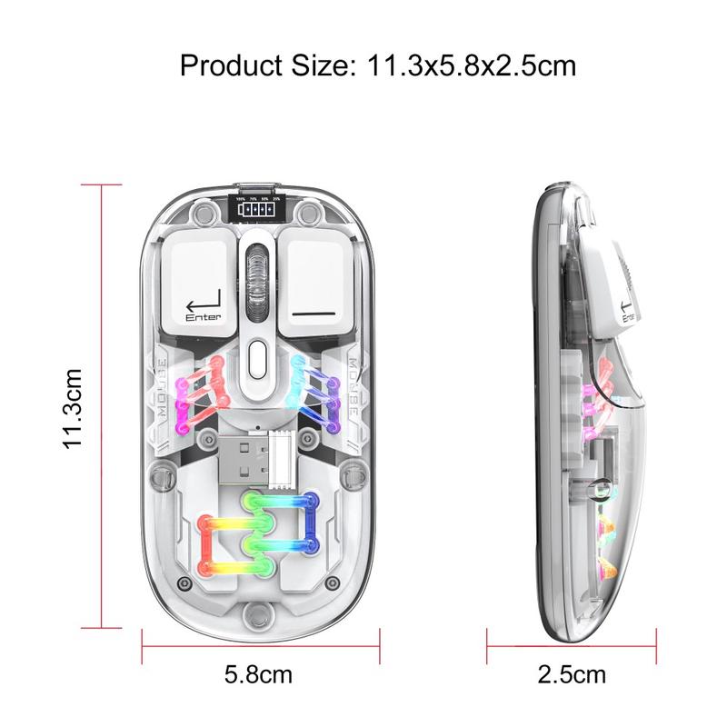 O rato sem fios Bluetooth HXSJ T200 oferece conetividade dupla via Bluetooth e 2,4 GHz sem fios, suportando ligações simultâneas a dois dispositivos. Fabricado em material de PC transparente com iluminação RGB personalizável, este rato oferece um aspeto topo de gama e uma funcionalidade superior. Com DPI ajustável (800/1200/1600), uma bateria recarregável de longa duração de 400mAh e um design ergonómico elegante, garante um funcionamento preciso e suave. Ideal para o trabalho e para os jogos, o rato aumenta a eficiência e o conforto com cliques silenciosos e uma iluminação vibrante.