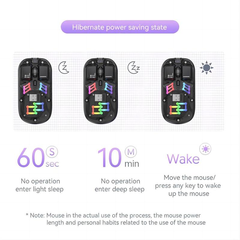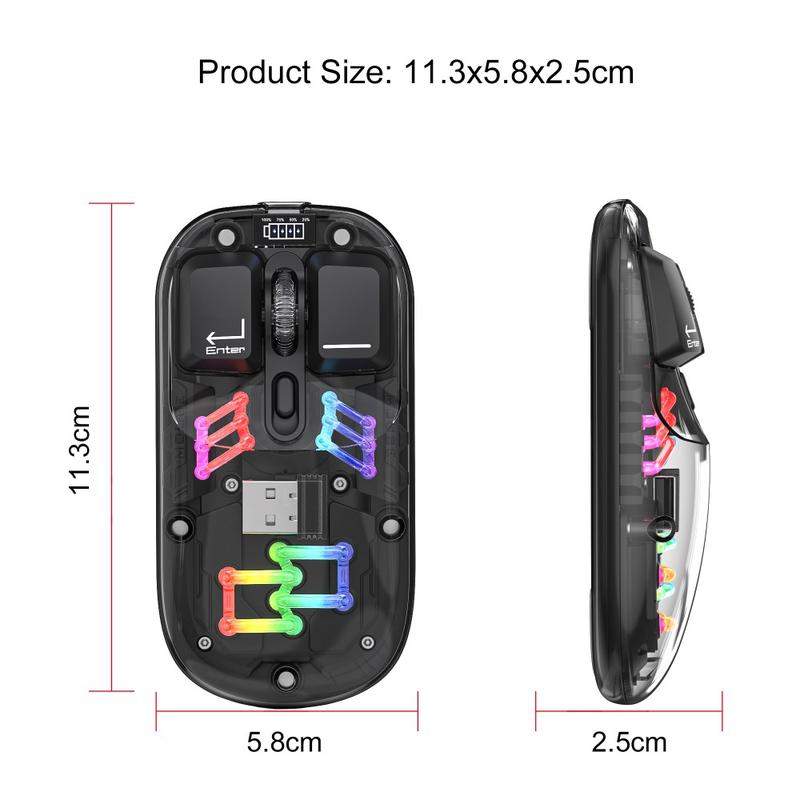 O rato sem fios Bluetooth HXSJ T200 oferece conetividade dupla via Bluetooth e 2,4 GHz sem fios, suportando ligações simultâneas a dois dispositivos. Fabricado em material de PC transparente com iluminação RGB personalizável, este rato oferece um aspeto topo de gama e uma funcionalidade superior. Com DPI ajustável (800/1200/1600), uma bateria recarregável de longa duração de 400mAh e um design ergonómico elegante, garante um funcionamento preciso e suave. Ideal para o trabalho e para os jogos, o rato aumenta a eficiência e o conforto com cliques silenciosos e uma iluminação vibrante.