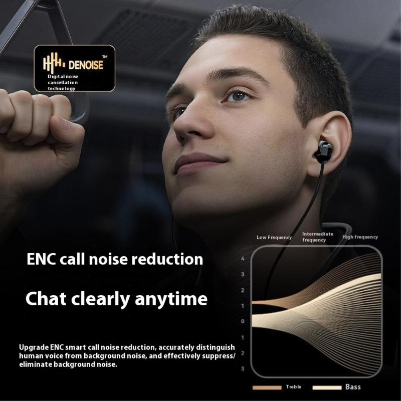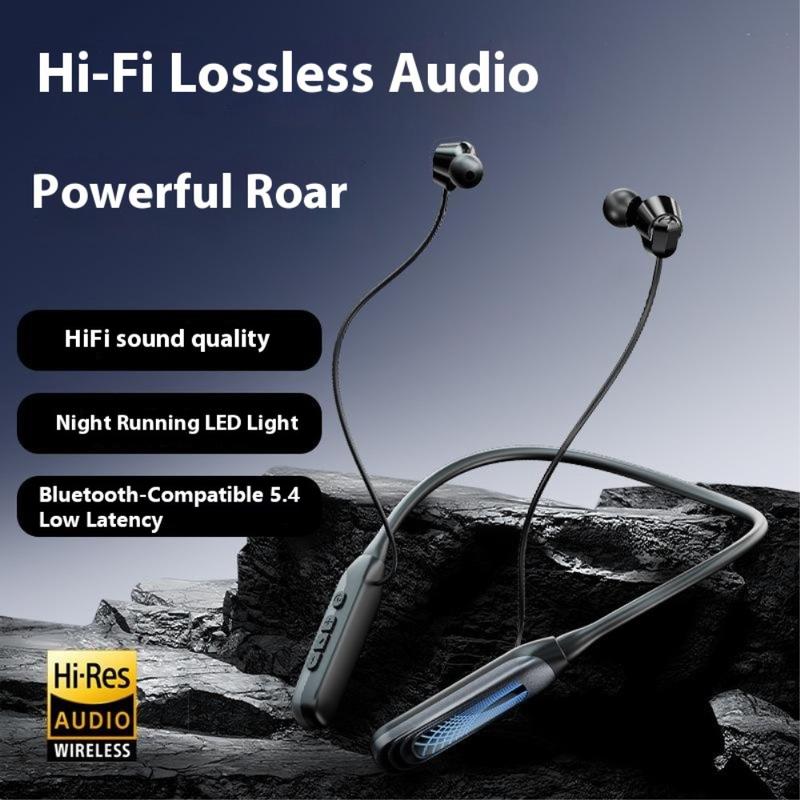 i58 Auscultadores com fita para o pescoço Bluetooth 5.4 - Auscultadores desportivos sem fios com autonomia de 80 horas e ecrã digital