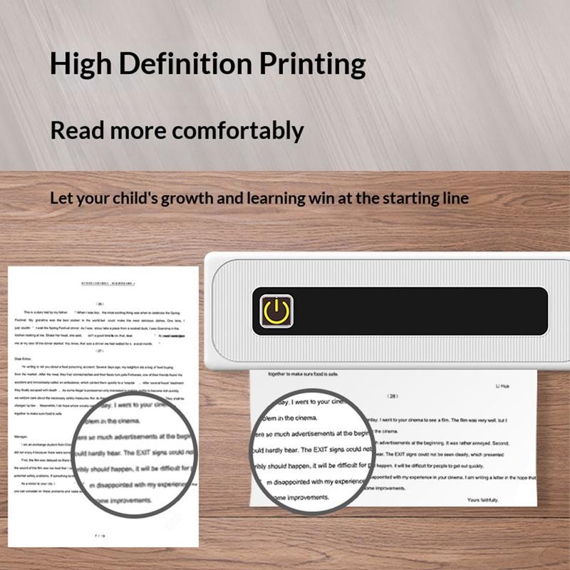 Impressora térmica portátil sem tinta A4B com Bluetooth para casa, escritório e estudo