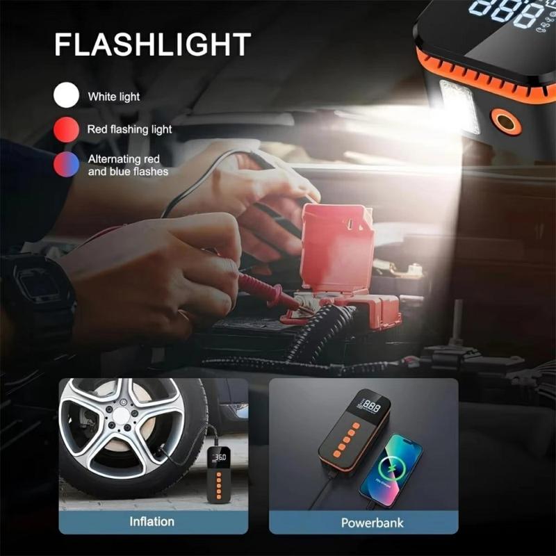 Conduzir com a pressão correta dos pneus não só melhora a segurança, como também aumenta a eficiência do combustível e prolonga a vida útil dos pneus. Com a sua alta pressão de até 150 PSI e capacidade de enchimento rápido, este insuflador portátil é uma atualização fiável para as bombas manuais tradicionais.