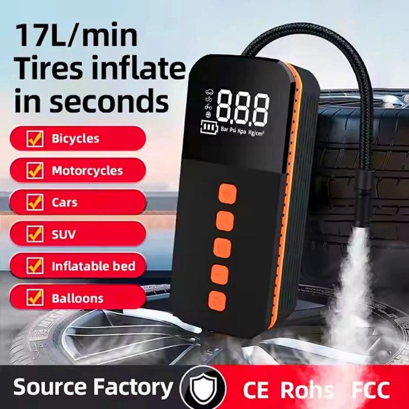 Mantenha-se preparado na estrada com este Inflador de pneus de automóvel portátil, uma bomba de ar sem fios compacta e potente concebida para encher rapidamente os pneus e para uma utilização versátil. Com um visor digital inteligente, modos predefinidos e uma capacidade de alta pressão de até 150 PSI, garante que pode encher pneus de carros, motos e bicicletas - ou mesmo bolas de desporto - com facilidade. O seu design portátil do tamanho de um copo, a bateria recarregável e a luz LED incorporada fazem dele uma ferramenta essencial para condutores e entusiastas de actividades ao ar livre.
