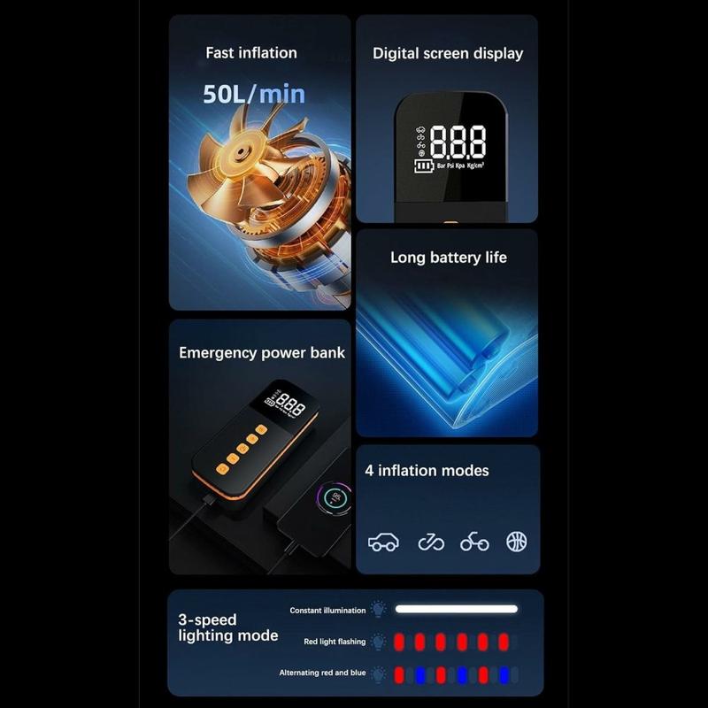 Ao contrário dos volumosos compressores de ar tradicionais, este inflador digital sem fio é leve, portátil e simples de usar. Seu display inteligente, modos predefinidos e velocidade de inflação poderosa o tornam um companheiro prático para uma direção segura e estilos de vida ativos.