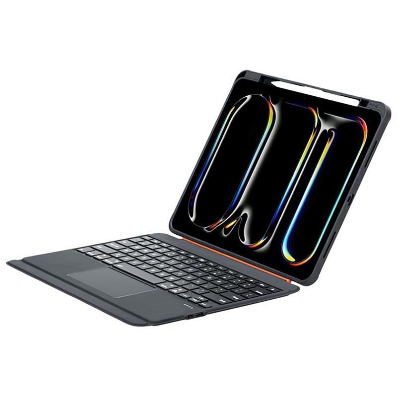 Transforme o seu iPad Air 13 2024/2025, iPad Pro 12.9 2018/2020/2021/2022 numa estação de trabalho de excelência com a capa de teclado magnético TU3609, que inclui um suporte totalmente rotativo, teclas retroiluminadas coloridas e fixação magnética. Perfeita para profissionais e estudantes, combina funcionalidade, flexibilidade e estilo moderno num design elegante.