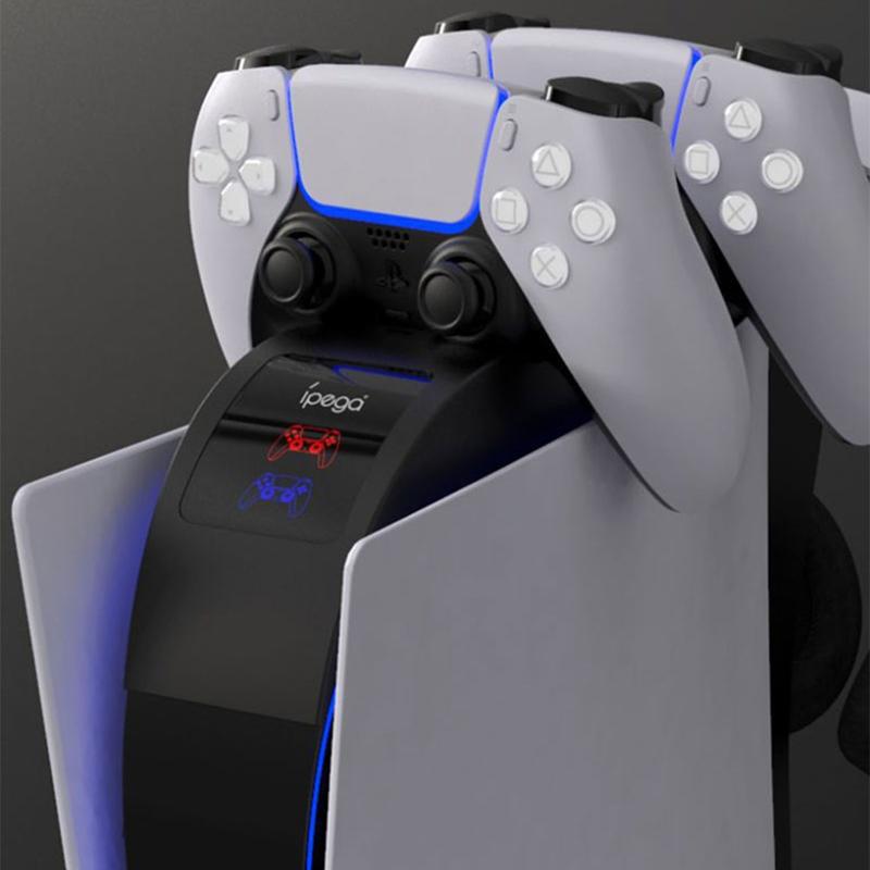 IPEGA PG-P5015 2 em 1 para PS5 Suporte de carregamento de controlador duplo com ventoinha de arrefecimento Suporte de armazenamento para auscultadores
