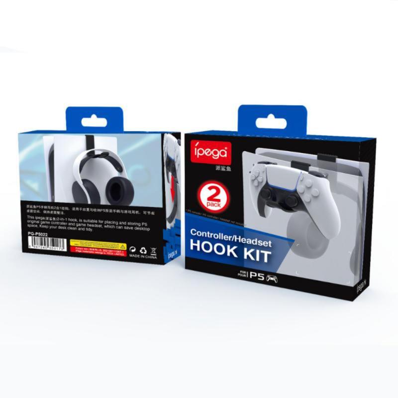 IPEGA PG-P5022 Suporte de montagem na parede 2Pcs Suporte de armazenamento de cabide para controlador de consola PS5 Suporte de auscultadores