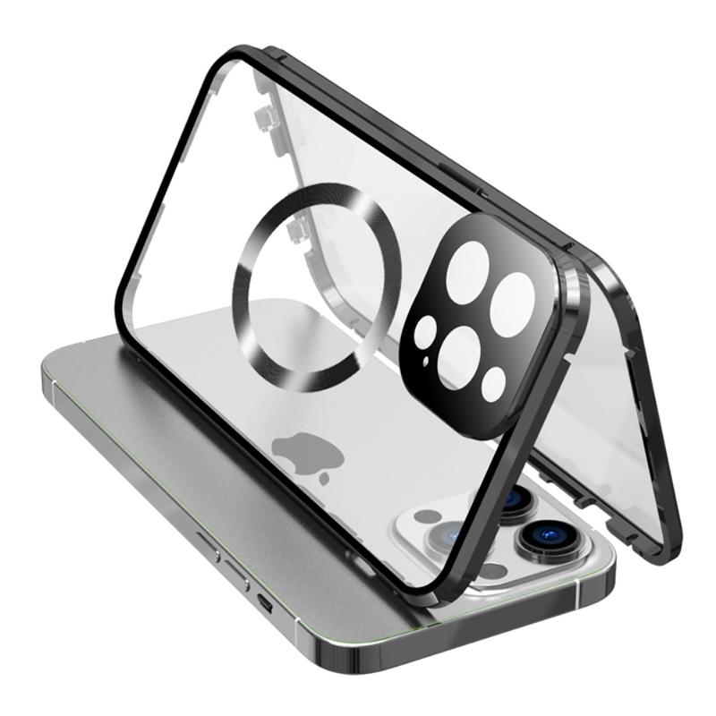 iPhone 15 Pro Max Capa para telemóvel em vidro temperado HD de dupla face compatível com MagSafe - Preto