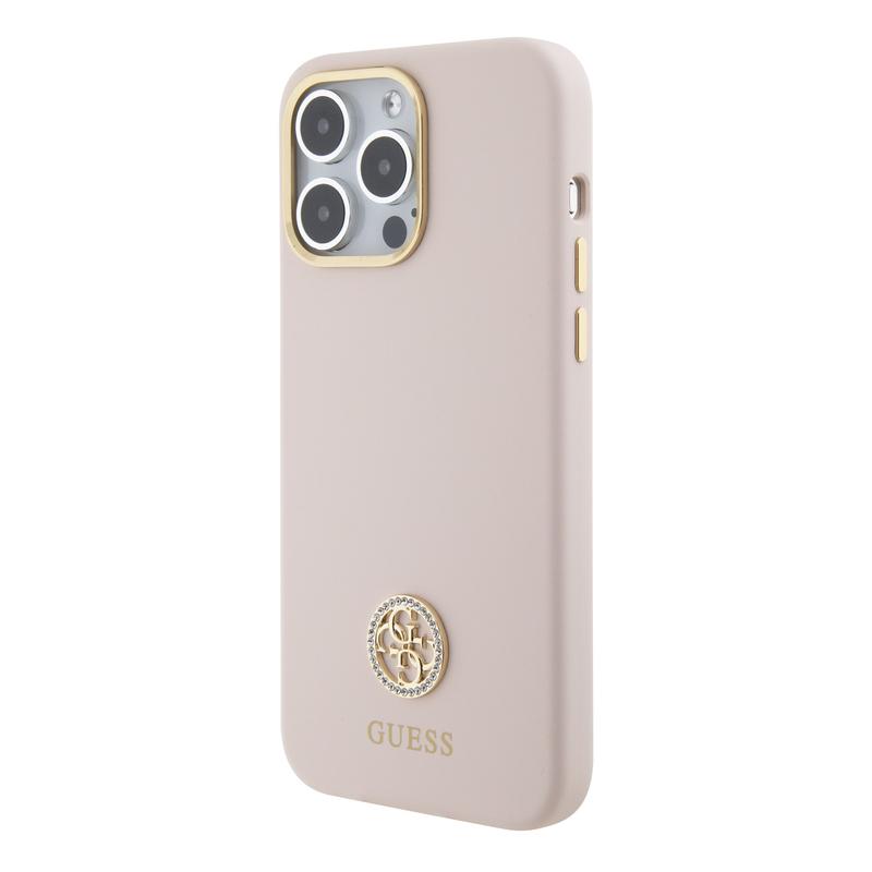 iPhone 15 Pro Max Guess 4G Rhinestone Metal Logo Liquid Silicone Case - Rosa