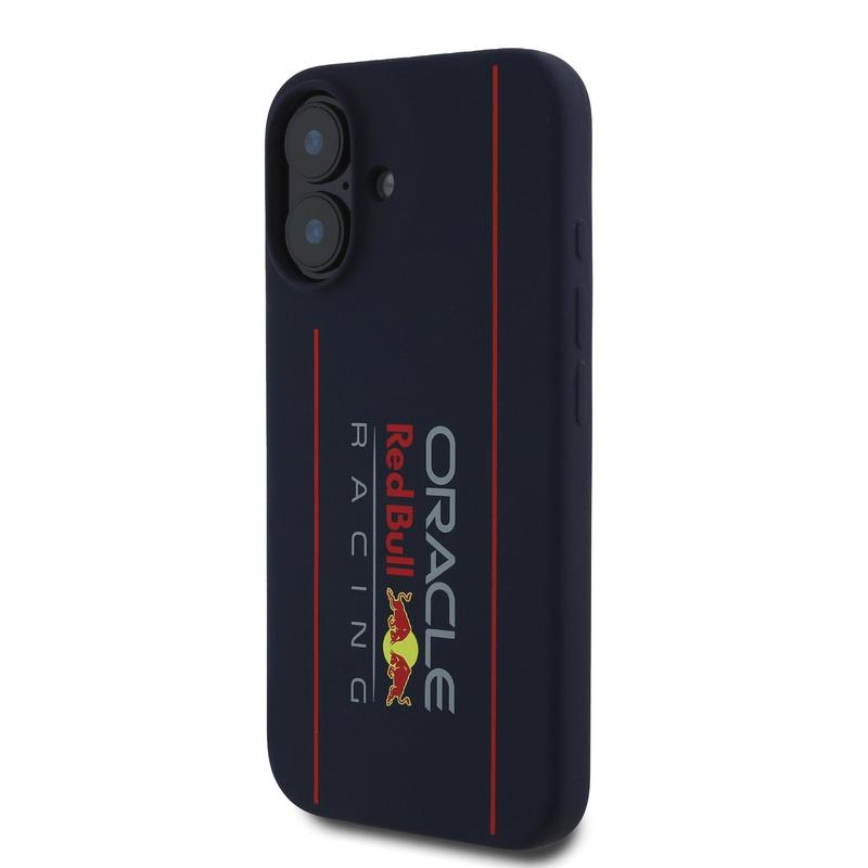 Capa de silicone líquida MagSafe com logótipo vertical da Oracle Red Bull Racing para iPhone 16