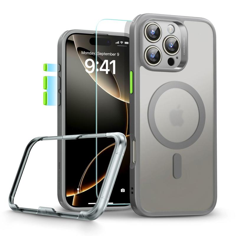 Conjunto ESR HaloLock MagSafe Classic Pro para iPhone 16 Pro Max - Capa híbrida de grau militar, protetor de ecrã de vidro temperado, protetor da lente da câmara