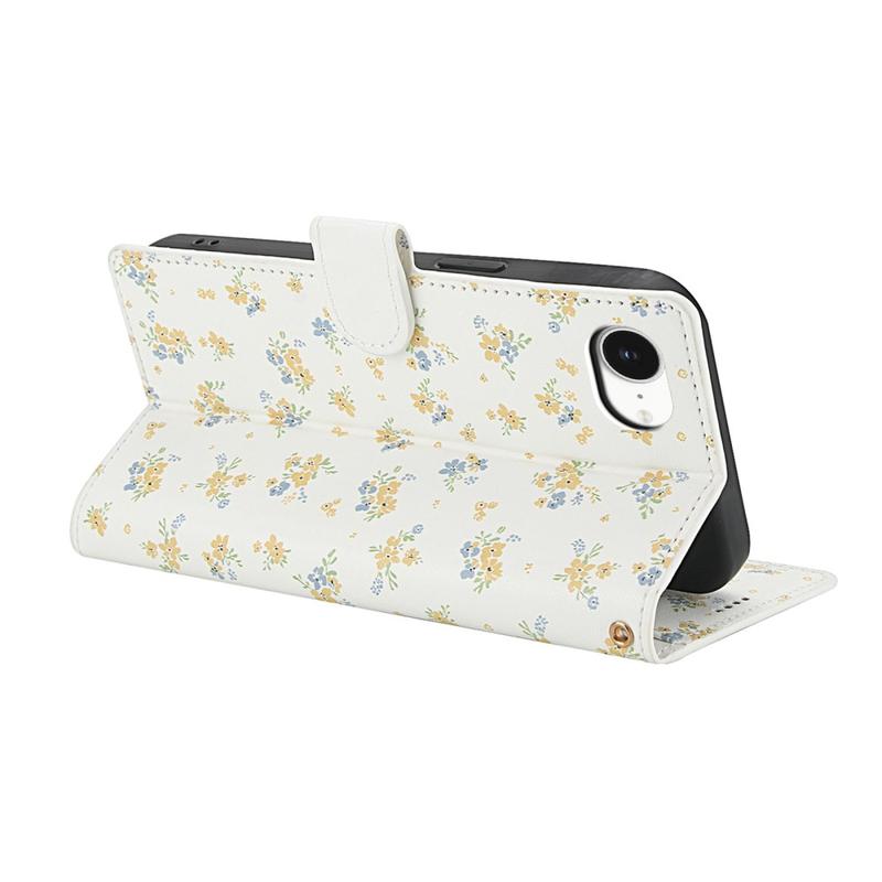 Capa carteira floral rômbica para iPhone 16e - com correia e ranhuras para cartões