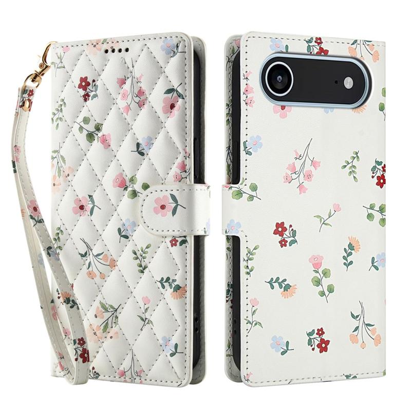 Capa carteira floral rômbica para iPhone Air - com correia e ranhuras para cartões