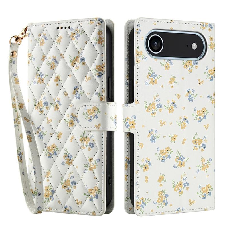 Capa carteira floral rômbica para iPhone Air - com correia e ranhuras para cartões