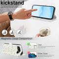 - A aba magnética mantém os cartões escondidos e o ecrã coberto sem volume extra