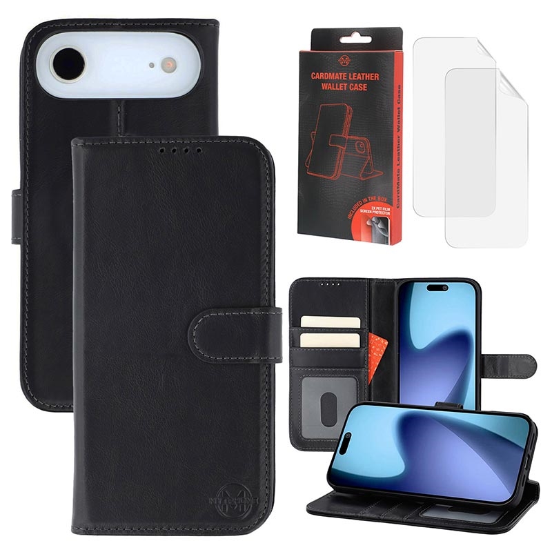 Capa de couro para carteira MyTPhone CardMate Premium para iPhone Air - Suporte de pé, suporte para cartões, suporte para carregamento sem fios, 2 protecções de ecrã