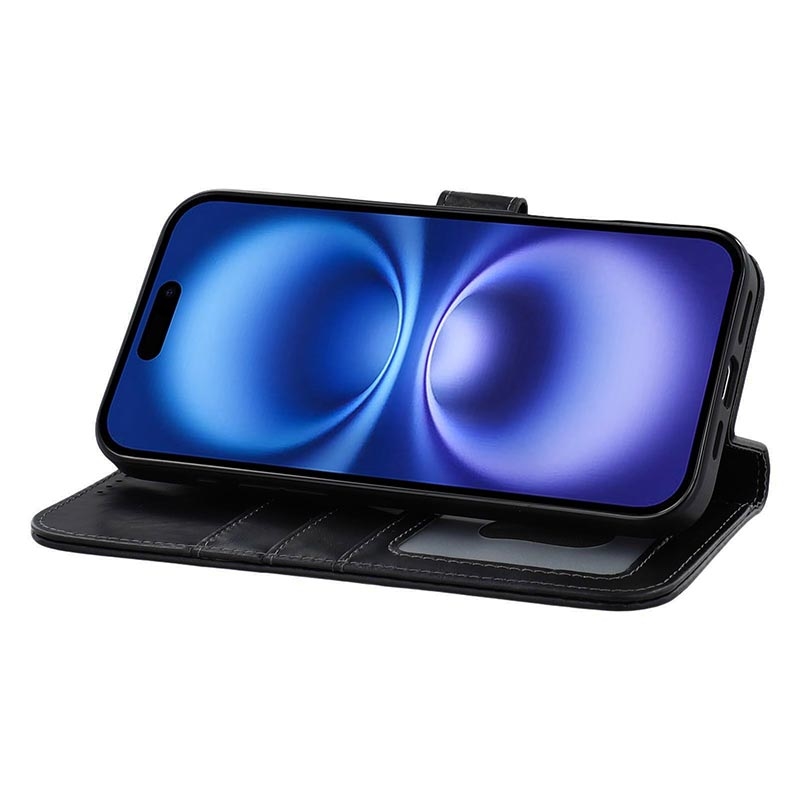 Capa de couro para carteira MyTPhone CardMate Premium para iPhone 17 - Suporte de pé, suporte para cartões, suporte para carregamento sem fios, 2 protecções de ecrã