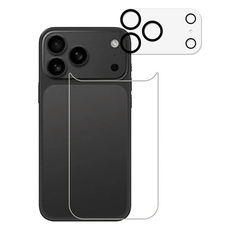 Conjunto 2 em 1 de proteção da tampa traseira de vidro temperado e proteção da lente da câmara para iPhone 17 Pro Max