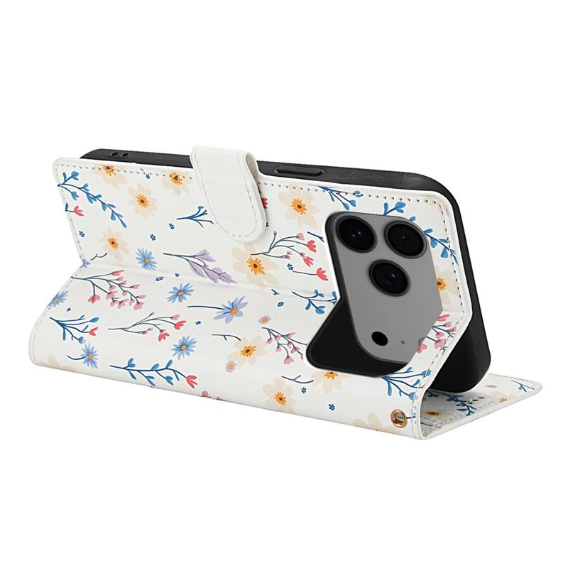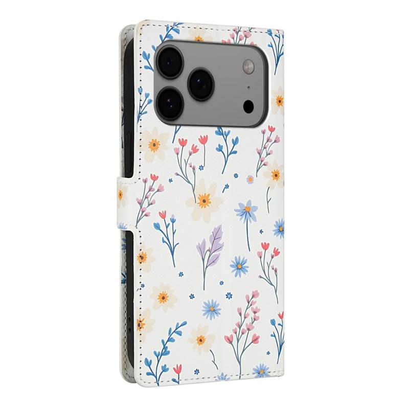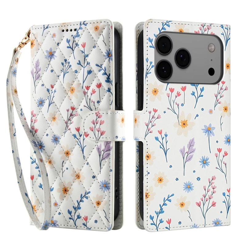 Capa carteira floral rômbica para iPhone 17 Pro Max - com correia e ranhuras para cartões