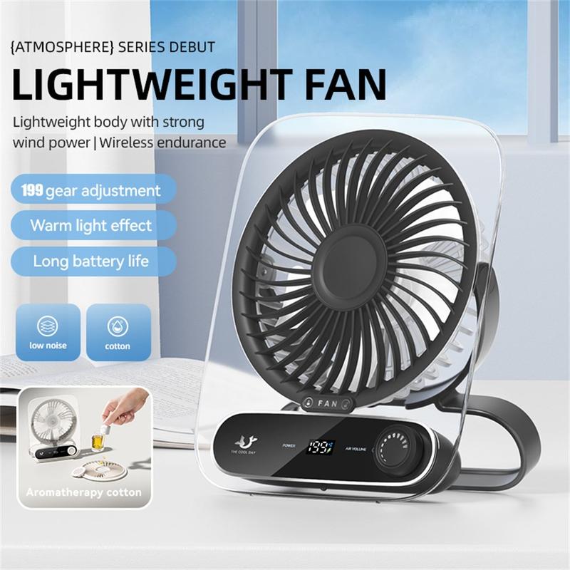 Vença o calor em qualquer lugar com o ultra-versátil JF136. O seu rotor de cinco lâminas proporciona um fluxo de ar potente e uniforme ao longo de um arco completo de 180°, enquanto uma estrutura fina em PC semi-transparente parece um bloco de gelo esculpido em qualquer secretária ou prateleira. Pendure-o num beliche, prenda-o a uma prateleira de cozinha ou coloque-o na vertical - 3000 mAh de energia da bateria e uma eficiência silenciosa mantêm-no fresco até 10 horas na definição mais baixa. Uma grelha amovível permite uma manutenção rápida sem pó e o carregamento rápido por USB-C significa que está sempre pronto para a próxima vaga de calor.