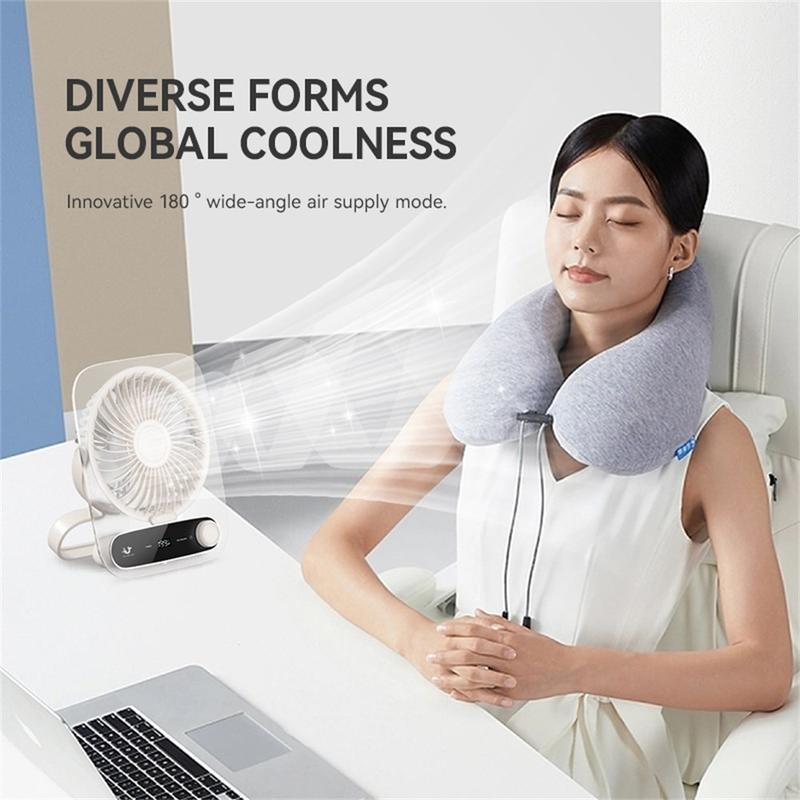 Vença o calor em qualquer lugar com o ultra-versátil JF136. O seu rotor de cinco lâminas proporciona um fluxo de ar potente e uniforme ao longo de um arco completo de 180°, enquanto uma estrutura fina em PC semi-transparente parece um bloco de gelo esculpido em qualquer secretária ou prateleira. Pendure-o num beliche, prenda-o a uma prateleira de cozinha ou coloque-o na vertical - 3000 mAh de energia da bateria e uma eficiência silenciosa mantêm-no fresco até 10 horas na definição mais baixa. Uma grelha amovível permite uma manutenção rápida sem pó e o carregamento rápido por USB-C significa que está sempre pronto para a próxima vaga de calor.