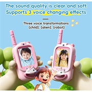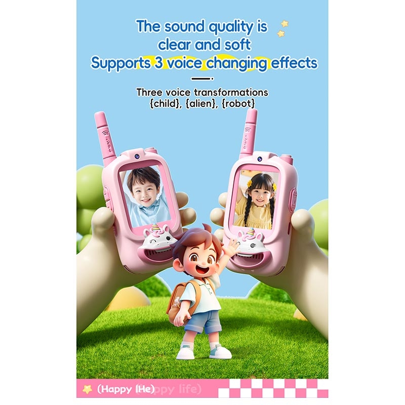 O conjunto de walkie-talkie de vídeo JK200 combina tecnologia, segurança e diversão. Com comunicação de vídeo em tempo real, efeitos de mudança de voz e um design robusto e adequado para crianças, é um acessório indispensável para aventuras criativas e conectadas.
