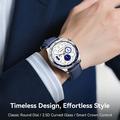 - Vidro redondo de 2,5 D e coroa inteligente - aspeto clássico, deslocação tátil do menu e atalhos instantâneos.
