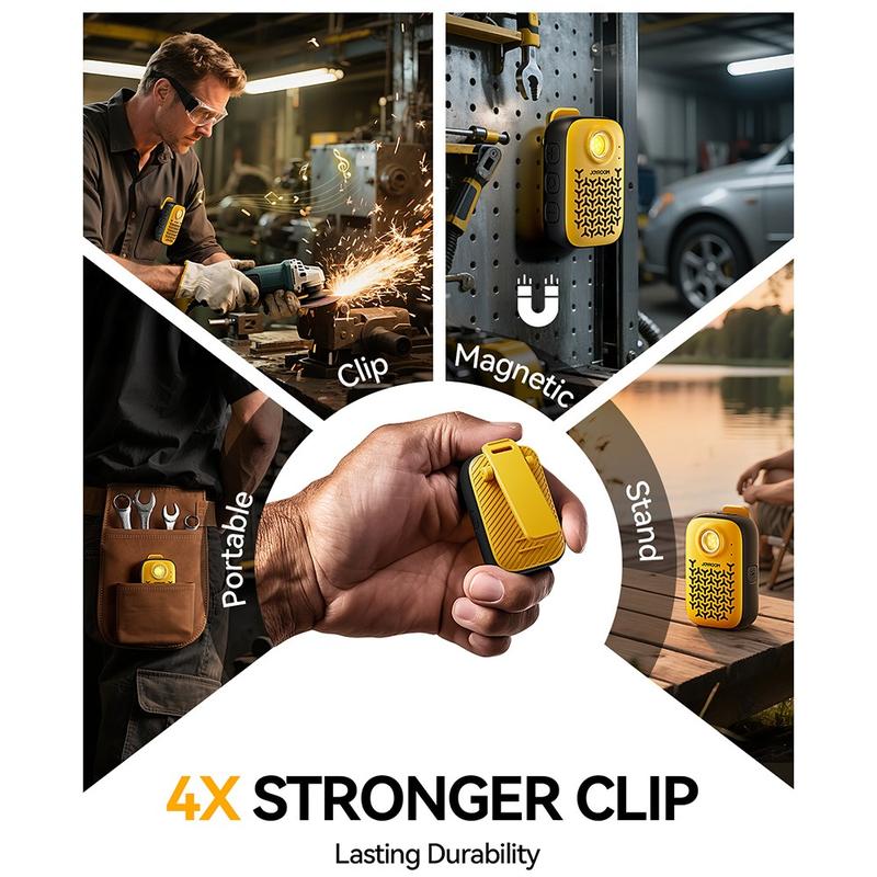 Leve música, luz e chamadas claras para qualquer lado. O leve Joyroom JR-MS03 pesa apenas 86 g, mas inclui um driver de gama completa de 33 mm, três modos de som comutáveis e uma estrutura à prova de água IP67 que resiste à chuva, à areia e à imersão total. Um clipe de alta resistência e um íman incorporado permitem-lhe fixá-lo a mochilas, guiadores ou aparelhos de ginástica, enquanto a lâmpada LED integrada oferece 50 %, 100 % e flash SOS para tarefas no parque de campismo ou emergências na estrada. O Bluetooth 5.4 mantém a latência baixa e a tecnologia ENC filtra o ruído do vento e da multidão para que as chamadas se mantenham nítidas mesmo nas ruas movimentadas da cidade.