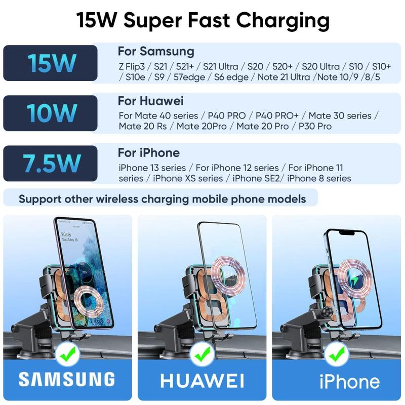 Em comparação com o suporte normal para telemóvel para automóvel, este carregador sem fios para automóvel com fixação automática é mais prático e seguro