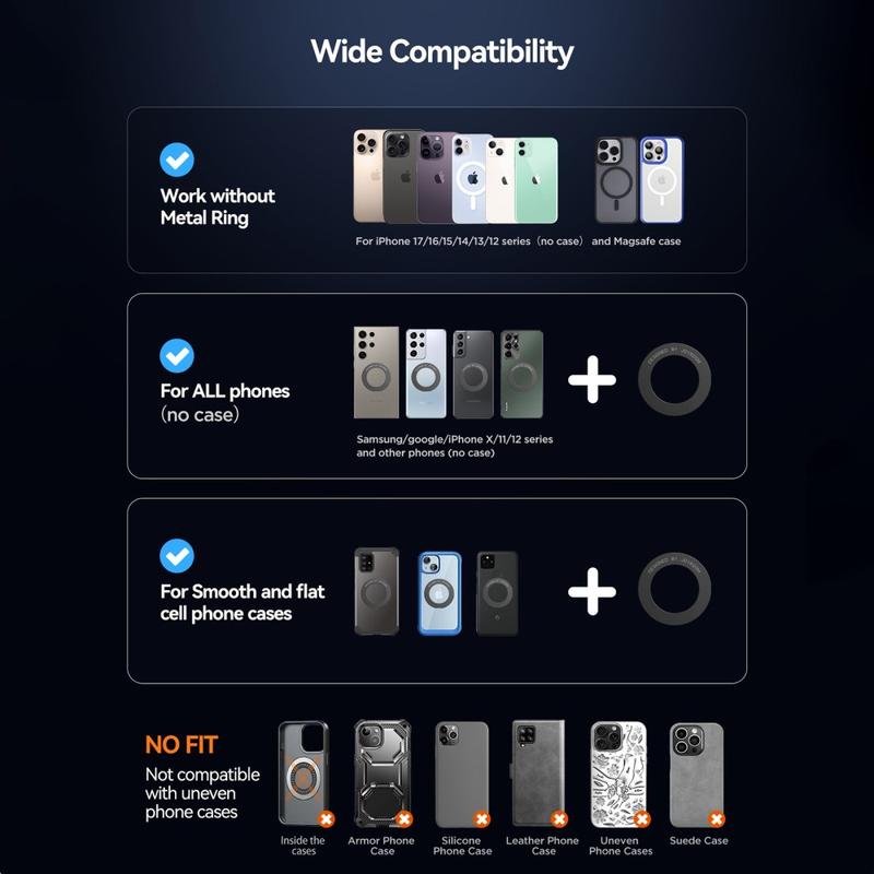 - Fixação magnética: Dupla face, compatível com Magsafe