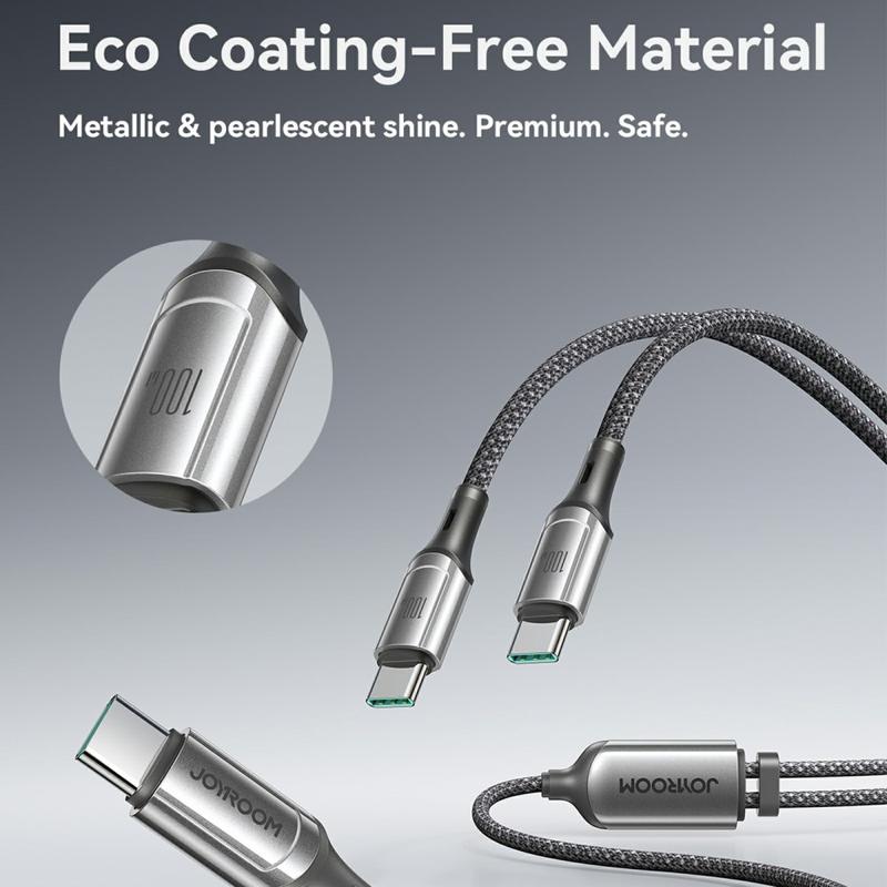 Cabo Joyroom S-A57 USB-C para cabo duplo USB-C - Carregamento rápido de 100 W com marcador eletrónico, sincronização de dados a 480 Mbps, entrançado em nylon, com braçadeira para cabo incluída