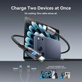 - Design USB-C para USB-C duplo para carregar dois dispositivos a partir de um cabo