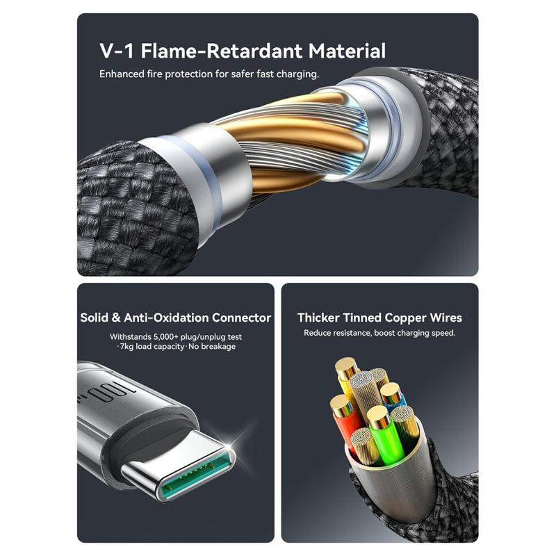 Se você usa vários dispositivos USB-C, este cabo reduz a confusão e simplifica o carregamento. Obtém suporte de 100 W de alta potência, gestão inteligente de energia e uma construção entrançada resistente concebida para uma utilização diária real - além da prática braçadeira organizadora para fácil armazenamento.