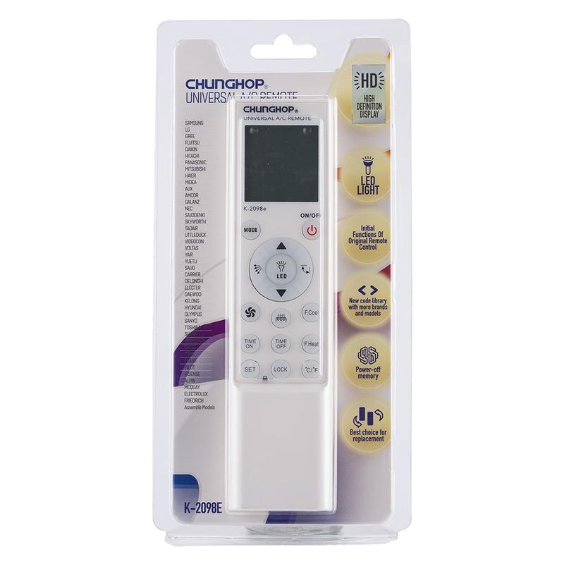 O Controlo Remoto Universal do Ar Condicionado CHUNGHOP K-2098E oferece uma solução fácil e económica para gerir a sua unidade de AC. A sua ampla compatibilidade, interface intuitiva e fácil configuração garantem o controlo total da temperatura, modos e temporizadores, tornando a vida mais confortável. Quer se trate de um controlo remoto de substituição ou extra, evita o incómodo e as despesas dos controlos específicos da marca.