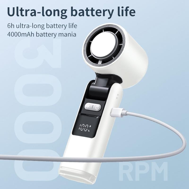 K-801 Ventoinha de mão de compressão a frio - Refrigerador portátil de 100 velocidades com ecrã digital de bateria e tecnologia de gelo semicondutor, recarregável por USB-C