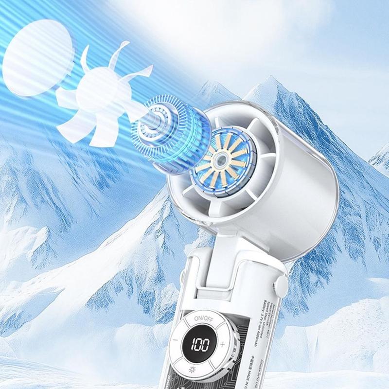 K-811 Ventoinha de mão Mecha Transparente - Arrefecedor portátil dobrável de 100 velocidades com compressor de gelo semicondutor e lanterna LED, recarregável