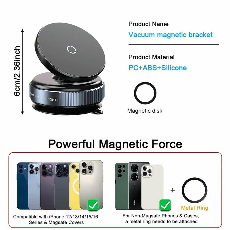 K009 Suporte magnético compacto para telemóvel para automóvel - Suporte mecânico de sucção a vácuo com rotação de 360° para painel de instrumentos e para-brisas