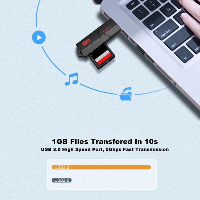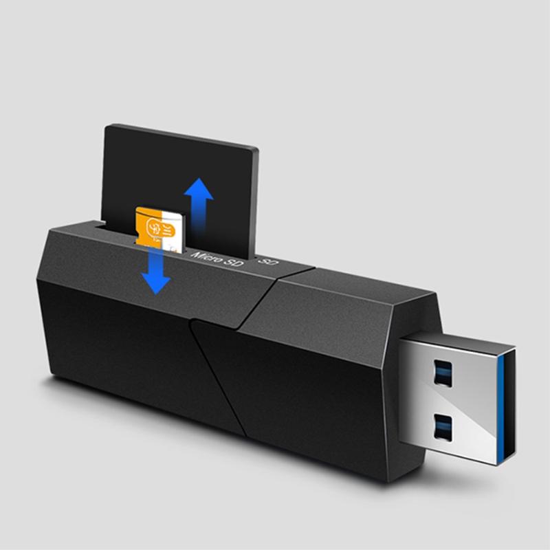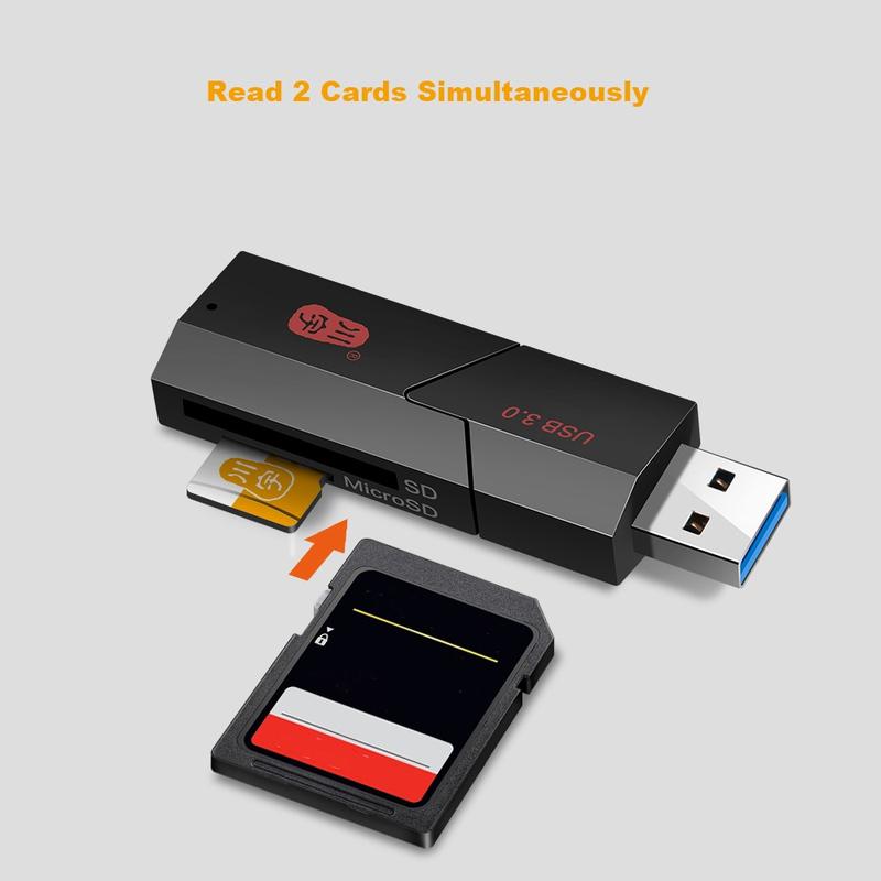 KAWAU C307DUO 2-em-1 USB 3.0 para leitor de cartões de memória Adaptador USB para cartões SD / SDHC / SDXC / TF