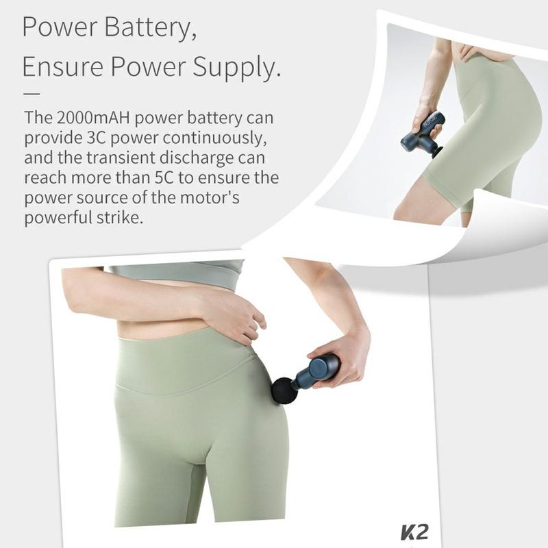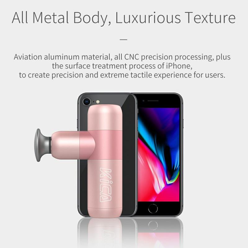 KiCA K2 Mini Massajador profissional de fitness / Pistola de massagem eléctrica com 4 níveis de velocidade, 4 cabeças de massagem - Relaxamento muscular compacto em movimento