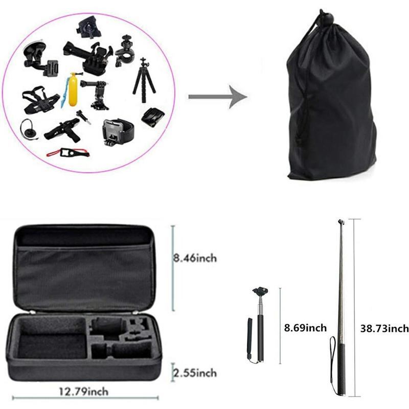 Vem com uma bolsa de transporte prática para manter os acessórios organizados e prontos para viajar, ideal para viagens, férias e filmagens ao ar livre.