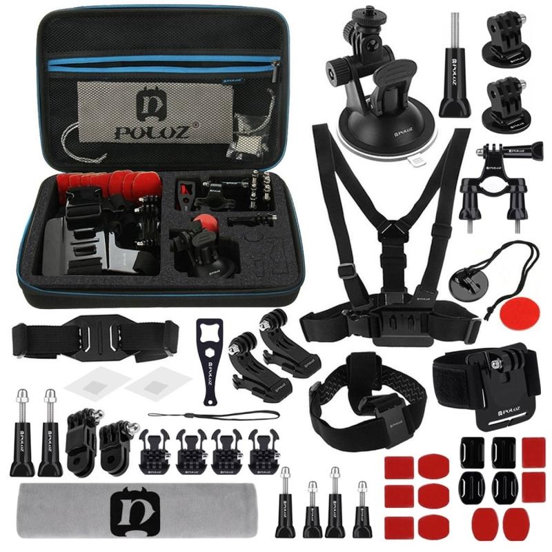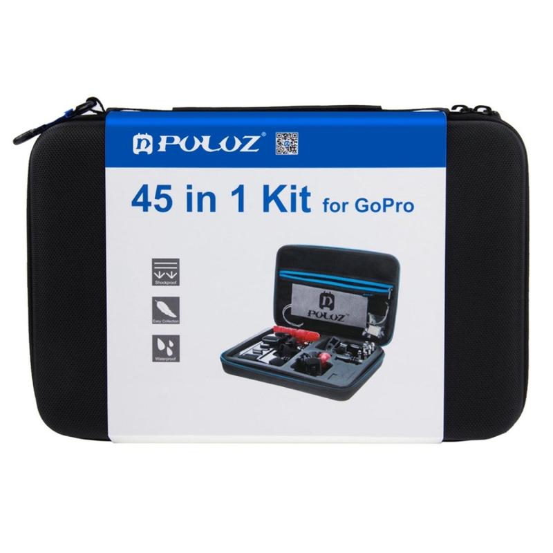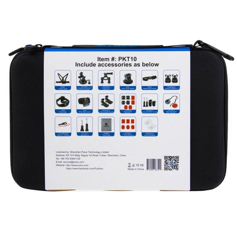 Kit de acessórios para câmara de ação PULUZ PKT10 45 em 1 - Estojo grande, suportes para peito e cabeça, conjunto de alças flutuantes para GoPro