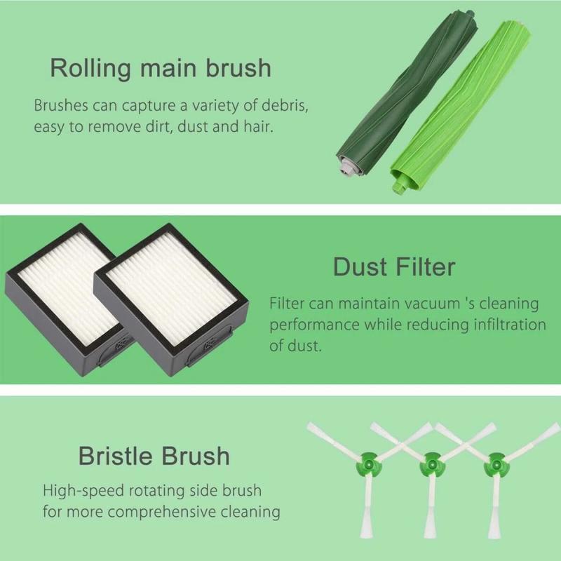 Kit de peças de substituição para iRobot Roomba i3/i4/i6/i7/E5/E6/E7 - Escova principal, escovas laterais e filtros - 8 peças