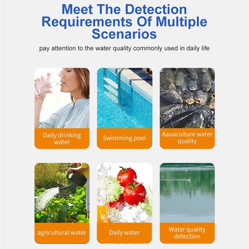 - Piscinas e spas: Avalie rapidamente a química da piscina, ajudando-o a equilibrar os produtos químicos para uma água cristalina e uma natação segura.